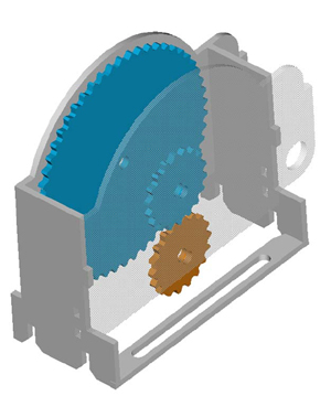 The carry mechanism works on only two adjacent product rods at a time. A gear train with a 3:1 reduction ratio engages racks on the tops of the product rods. As the lower order product rod slides by three units in one direction, the other higher order product rod slides one unit in the other direction. A three-unit long slot in the frame of the carry mechanism serves to guide the motion of the lower order product rod. This carry operation would have to be performed several times during the course of a lengthy calculation.