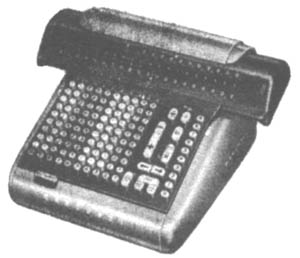 The consolidated corporation took the name of Smith-Corona Marchant Inc. In the fall of 1958 the corporation acquired the calculator manufacturing subsidiary of a major telephone equipment manufacturer in West Germany. The long established manufacturing unit’s line of calculators and new models soon to be released will be marketed under the Marchant name throughout the world. The factory located in West Berlin is operated by a subsisdiary, Hamman Rechenmaschine G.m.b,H. The “Transflo” Intensive product development continues at Marchant Calculators as it has throughout the almost five decades since the Marchant brothers completed the first “Standard.” Now on the production lines is another major advance in automatic calculators – the Marchant “Transflo.” The name “Transflo” was chosen for the new calculator because it makes figures “flow” from dial to dial. Its focal feature is a back transfer control. This permits transferring an answer from the lower carriage dials into the keyboard dials. On other calculators it is necessary to manually re-enter in the keyboard the figures in the answer dials. The figures back transferred into the keyboard dial of the “Transflo” can be used for another calculation (addition, subtraction, multiplation or division) or they can simply be stored in the lower carriage dial for future use. Because the “Transflo” transfers, stores and recalls figures it brings to business and industry, and to calculator users everywhere, a new flexibility and versatility in figure work never before enjoyed. Beyond the “Transflo”, in the years to come is a family of business machines that will spring from a tradition of pioneering. This pioneering spirit had its beginnings in the hearts, minds and hands of the Marchant brothers almost 50 years ago. It had the same beginning with two brothers by the name of Smith who fashioned the first typewriters 72 years ago. Now that these two names are joined, the unified effort of those who